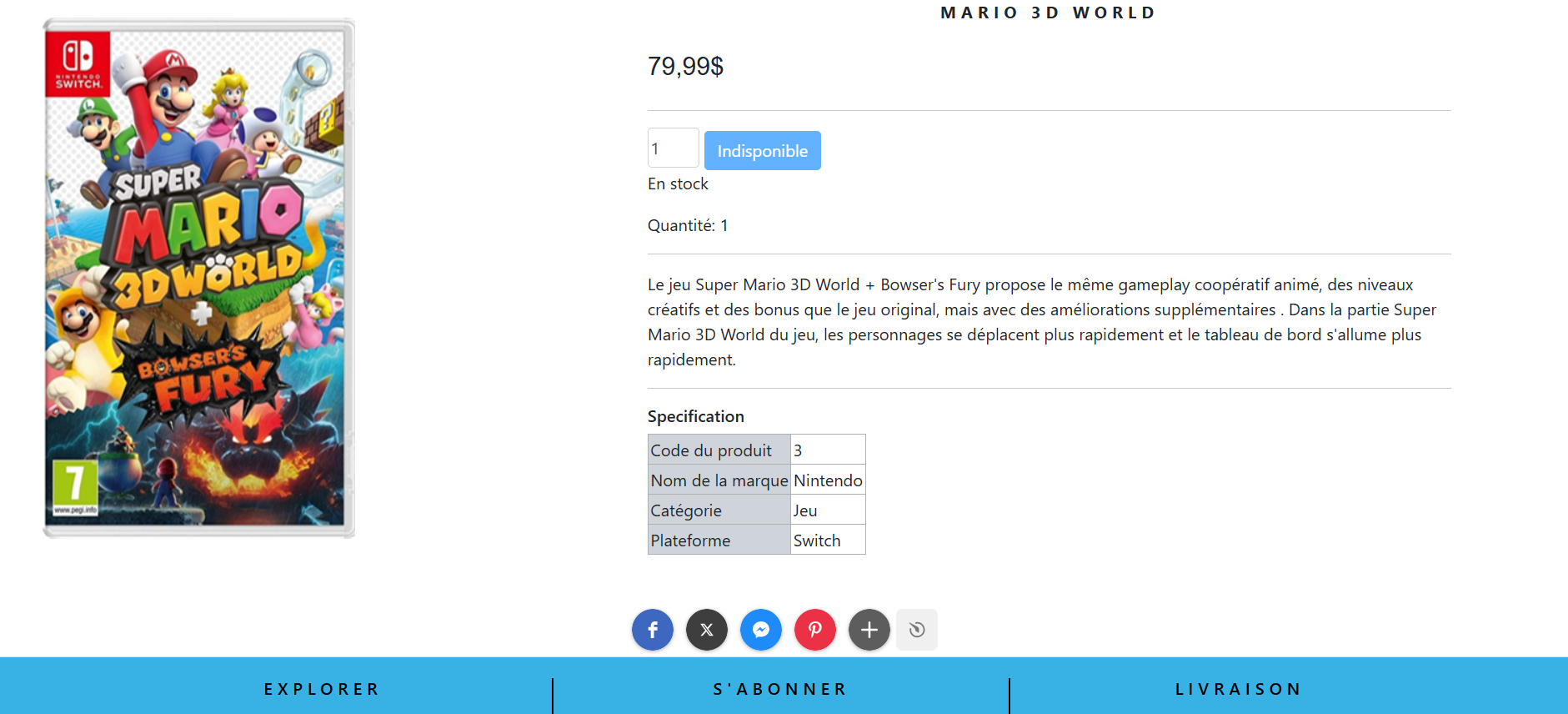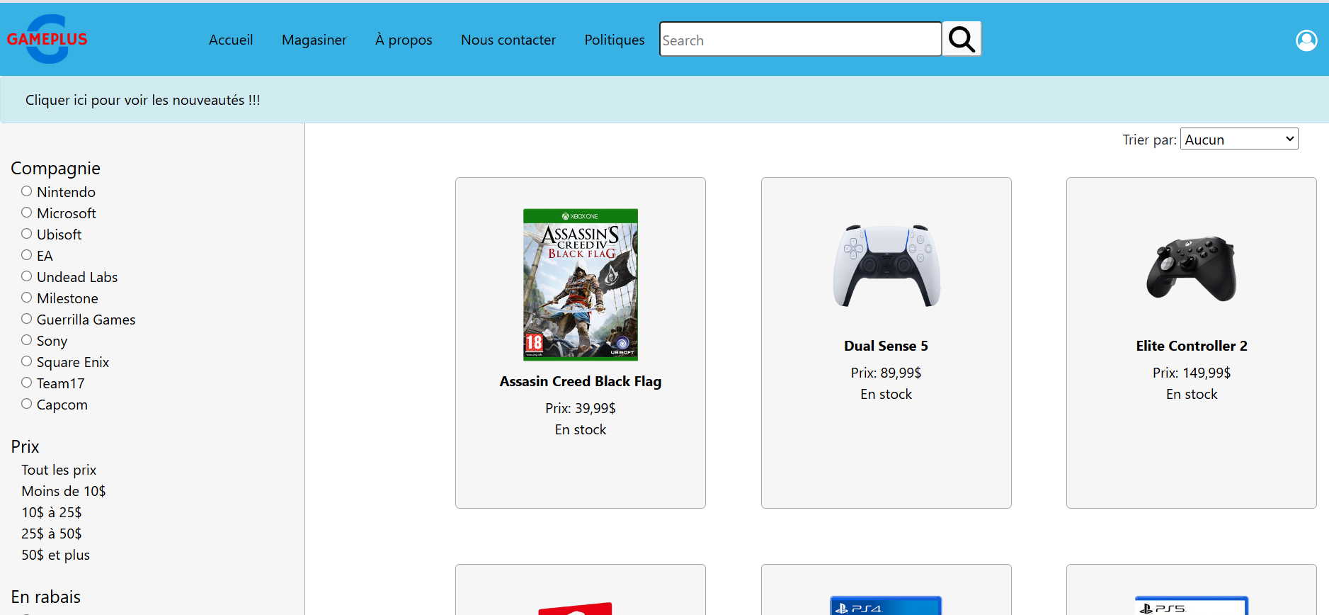 Le but de ce projet était de créer un site web e-commerce en équipe de 4, entièrement à partir de zéro. Bien qu'il ait été possible d'utiliser un template, nous avons choisi de ne pas en utiliser.